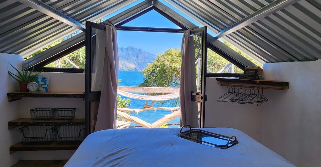 Esta encantadora cabañita de madera, recién renovada, ofrece una vista espectacular del Lago de Atitlán, considerado uno de los más hermosos del mundo. Encontrarán artesanías de origen local, como textiles y muebles de bambú, dentro de un entorno natural excepcional.