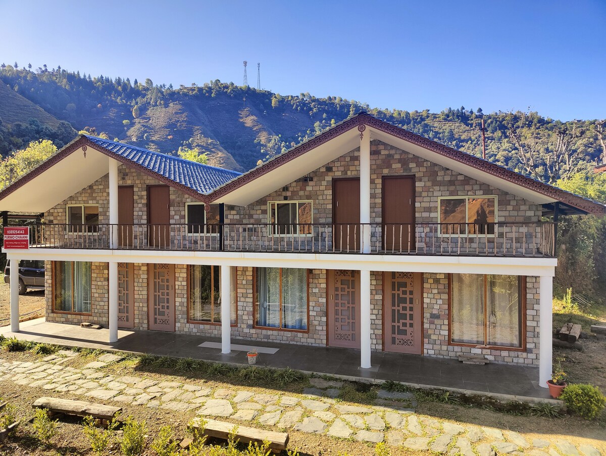 Purmo Chaani, enclavado en el pueblo de Dasson, en la región de Chakrata, ofrece un refugio poco convencional rodeado de majestuosas montañas. Este tranquilo refugio cuenta con acogedoras habitaciones de madera con camas tamaño queen y tamaño king, perfectas para una escapada tranquila. Llega a él en un aventurero paseo todoterreno cuesta abajo de 1,5 km. Los amantes de la naturaleza pueden disfrutar de una caminata de 2 km a una cascada oculta, revelando la belleza virgen de la zona. Ideal para aquellos que buscan soledad y una auténtica experiencia de montaña lejos de los senderos turísticos habituales.
