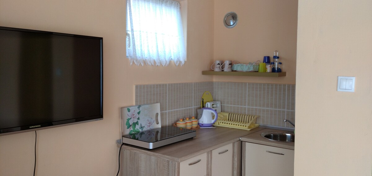 Relájate en este acogedor y bien equipado alojamiento. Disfruta de la naturaleza virgen llena de fuentes de agua potable. Hay un arroyo de montaña debajo de la cabaña, y si caminas durante 15 minutos, encontrarás una cueva con murciélagos y una antigua cantera. Tenemos bosques de castaños para que puedas disfrutar de este manjar en otoño y, si tienes suerte, también encontrarás un gran número de setas que crecen en estos bosques. En primavera, puedes disfrutar de las flores de las orquídeas silvestres que solo crecen en esta zona
