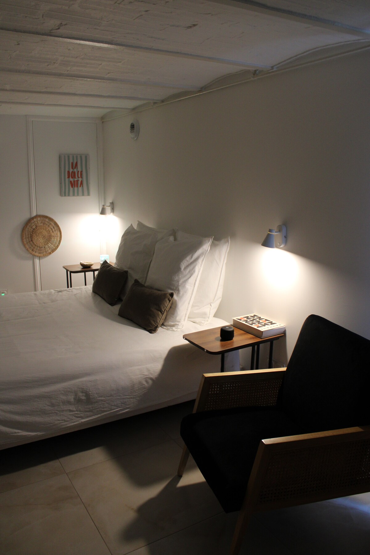 Encantadora dependencia privada en una casa unifamiliar, con todas las comodidades, situada en Melun. Cerca del centro de la ciudad y del transporte público. La casa de huéspedes consta de un dormitorio equipado con una cama doble, un escritorio, un televisor, un microondas, un hervidor de agua, un sofá con mesa y un vestidor. Se proporciona ropa de cama. También se beneficiará de un baño italiano privado y un aseo. Disfrute de un espacio íntimo y bien equipado, ideal para una estancia agradable.