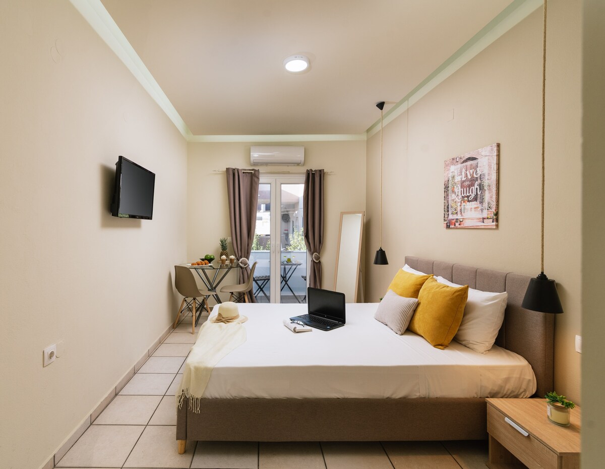 ¡Descubre la magia de Heraclión alojándote en nuestro espacio! Disfruta de la comodidad de un apartamento moderno, en un barrio animado lleno de tabernas y cafés tradicionales. Desde la cómoda cama doble hasta la cocina totalmente equipada, cada rincón de nuestro espacio le ofrecerá relajación y calidez. Con nuestro servicio y fácil acceso a los lugares de interés, ¡vivirás una experiencia inolvidable en el centro de la ciudad!