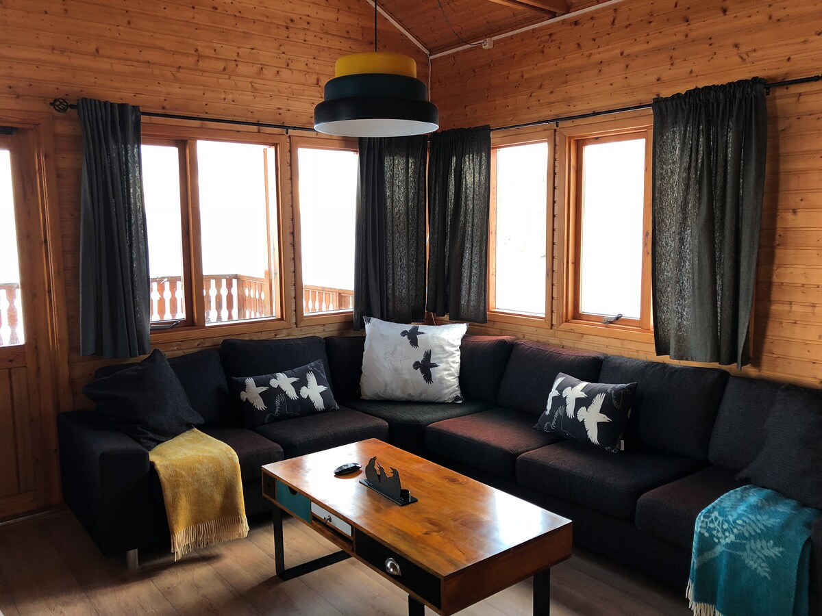 Welcome to Höfði! We offer a cozy cottage in a stunning location in Dalvik, surrounded by the Svarfadardalur Nature Reserve! Hàr is a cottage that can accommodate up to 5 people (2 single beds in a room, a single and a french size double bed in the other one). The cottage has a well equipped kitchen, a big living room and a bathroom with shower. Outside on the private patio a hot tube, a BBQ, table and chairs are available. Free Wi-Fi and TV with ChromeCast, linen and towels are included