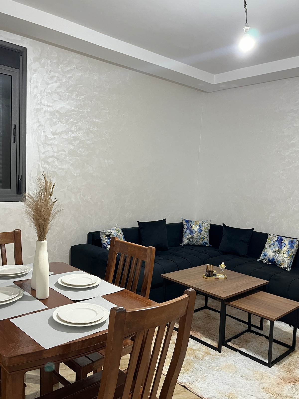 En casa de Anas, su satisfacción es mi prioridad. Acceso rápido, completo , seguro y tranquilo , limpio y excelente servicio. A 5 minutos de la estación de tren de Temara y a 2 minutos de las grandes superficies (ASWAK SALAM / CARREFOUR). El apartamento está situado en un edificio nuevo, en la 4.ª planta con ascensor y plazas de aparcamiento delante del edificio. El apartamento está equipado con fibra óptica de 100 M La decoración interior del apartamento está hecha con amor para que nuestros huéspedes se sientan como en casa