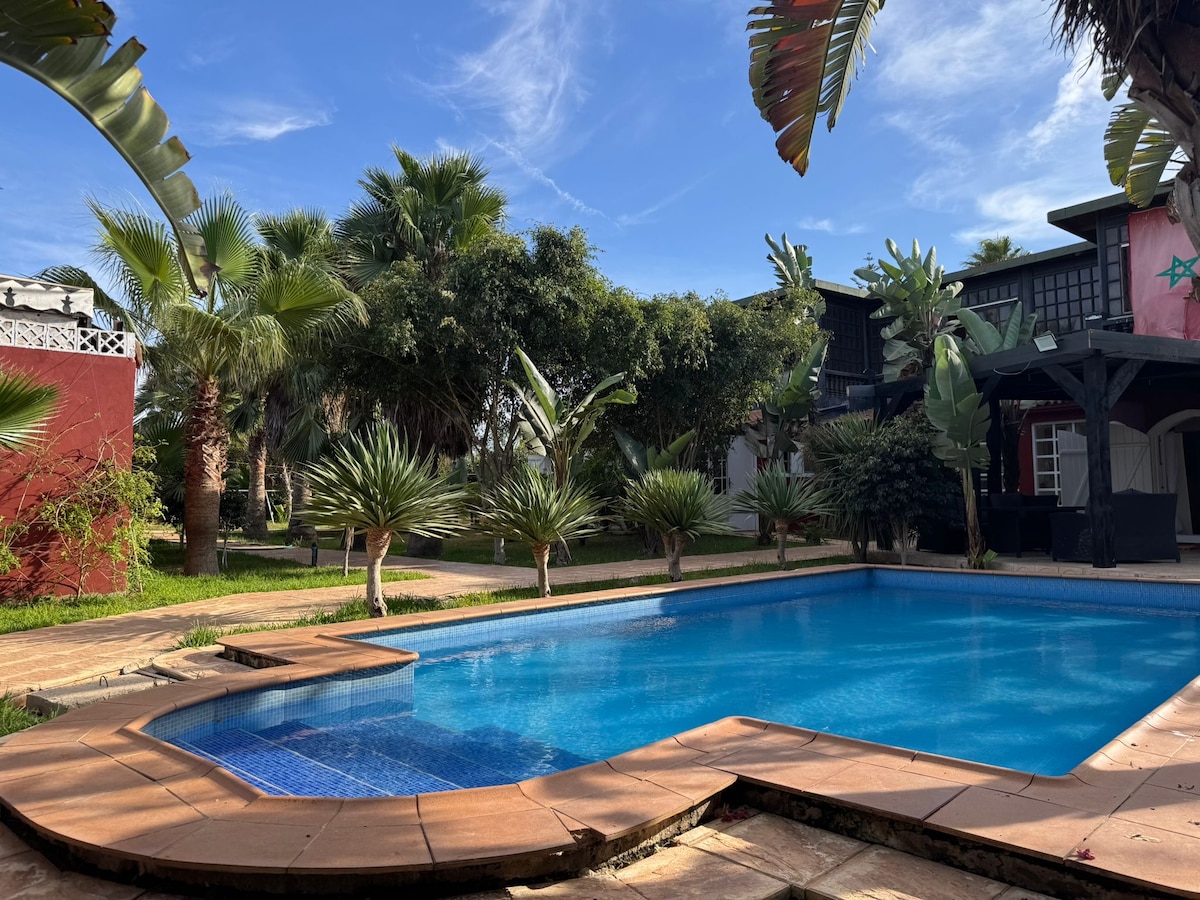 Située sur les Hauteurs du Rocher Sid El Abed, connu pour son port de plaisance, son club nautique, son petit port de pêche et ses plages aux sables chauds, Riad Majorelle a été entièrement rénové en 2020. Tout a été conçu pour faire du Riad un agréable lieu d'accueil, alliant style marocain et confort moderne, pour un séjour mémorable où vous apprécierez toutes les joies de la détente. Accès à la plage (50m) Idéal pour un séjour en famille avec enfants ou pour un groupe d'amis. Ménage inclus