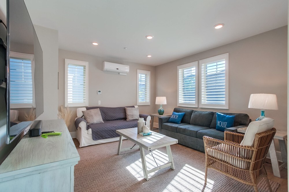 Enjoy access to everything in San Diego from this centrally located home. Located in the midway district only four blocks from Sports Arena. This brand new unit is equipped with everything you need and more. It has a fully equipped kitchen with tons of storage, large living area, large bedroom, super fast Wi-Fi, filtered shower, backlit vanity mirror, full-size washer and dryer in closet, dimmable lighting throughout, cozy bedding, thick towels, parking, and tons of natural light.