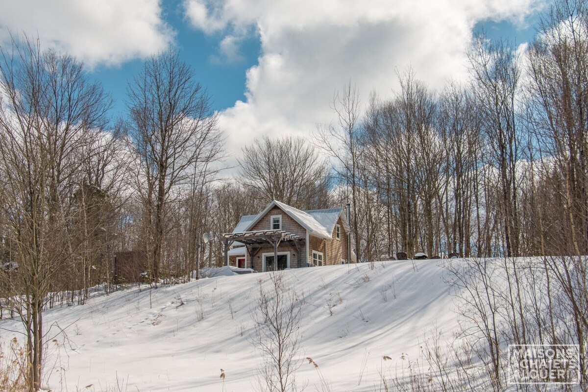 *$* PROMOCIÓN DE INVIERNO *$* Para una reserva de fin de semana (viernes y sábado) ¡la tercera noche del domingo cuesta 90,00 USD! Concepto abierto monumental, en plena naturaleza. Acceso a senderos justo detrás de la casa. Estufa de leña, baño grande y moderno, un dormitorio + sofá cama. Otro sofá cama en la sala de estar. Chalet ideal para una pareja con niños o dos parejas. ¡Bienvenidos los amantes de las aves silvestres, los pavos y los ciervos! Wifi y cargador para vehículos eléctricos incluidos. ¡Se admiten perros! CITQ: #308038