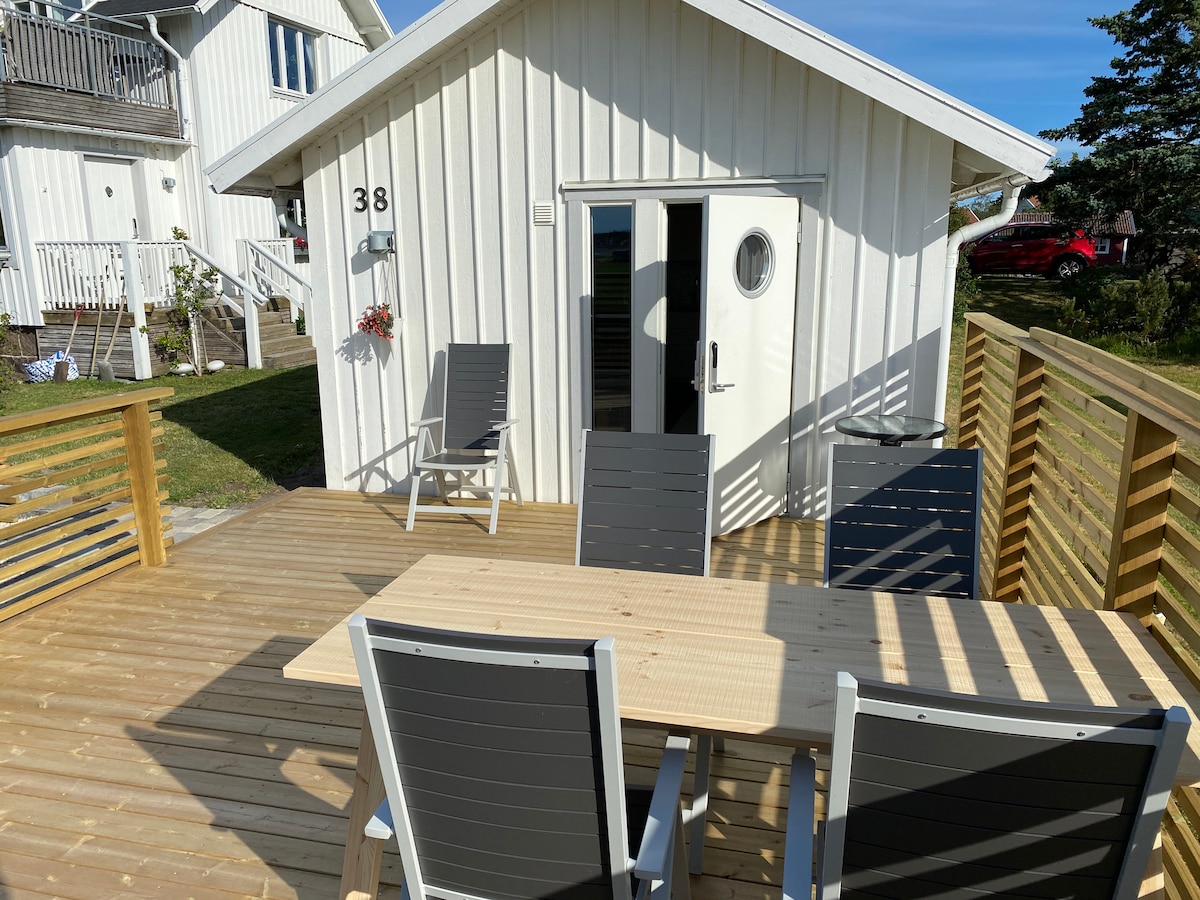 ¡Bienvenido a nuestro pequeño paraíso! En la esquina de nuestro jardín tenemos una casa que alquilamos. Se encuentra cerca del mar y de la playa en el antiguo pueblo pesquero de Träslövsläge. Si quieres alquilar esta casa por una semana o más a partir de septiembre, ¡envíame una solicitud de descuento! Esta pequeña casa (23 metros cuadrados) tiene su propio patio acogedor sobre la hierba debajo del manzano. Cerca de autobuses, restaurante, heladería y la playa (0,5 km). 6 km del centro de Varberg.
