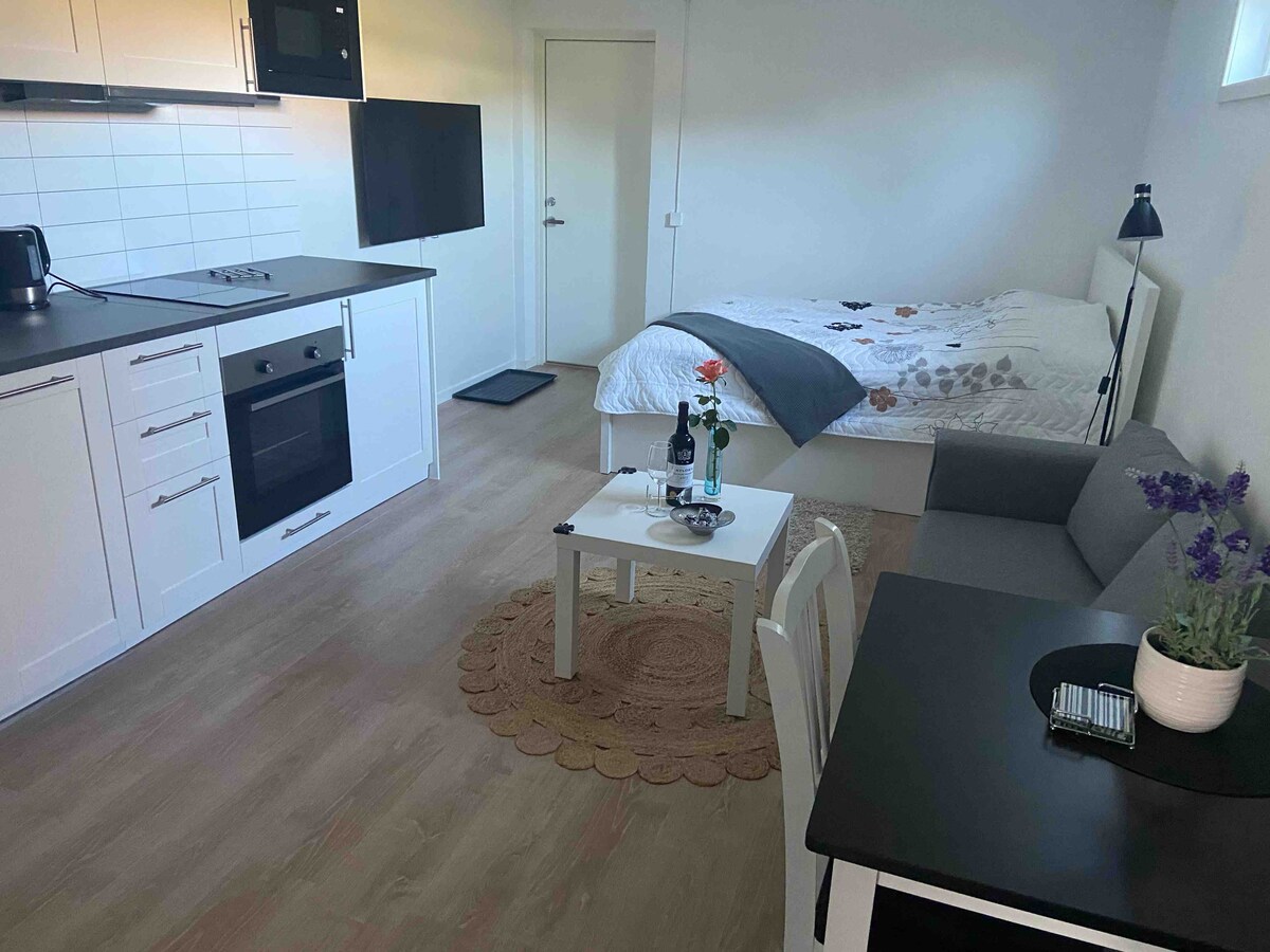El interior del apartamento ha sido seleccionado cuidadosamente para ofrecerte una experiencia de vacaciones única. En los 25 m2 encontrarás todo lo que podrías desear. Un encantador sofá de salón de Sweef que se transforma fácilmente en una cama grande maravillosamente cómoda. Televisión inteligente para que puedas usar tu propia cuenta de Netflix. Cocina totalmente equipada con horno de vapor, lavavajillas, nevera y todo el equipo de cocina que necesitas. En el baño totalmente revestido de azulejos hay una lavadora. Jacuzzi (tarifa de baño 200 SEK/día).