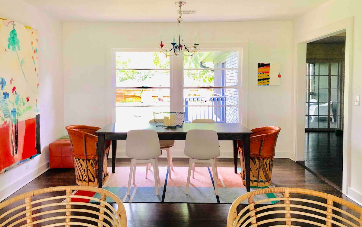 ¡Alójate en el corazón de Bentonville! The Yellow Flower ofrece fácil acceso a todos los sitios. No necesitas coche, ¡átate los zapatos para caminar, súbete a tu bicicleta o alquila un patinete y haz un recorrido! Pasea por la historia en el Museo Walmart. Deléitate con la comida de chefs galardonados. Pasea por los jardines de Compton. Disfruta del arte en Crystal Bridges y The Momentary. ¡Recorre los senderos para bicicletas! Asa smores sobre el fuego, relájate en el patio o relájate en el interior. Nombrado uno de los 10 mejores Airbnb para bicicletas en 2021 por NWA Travel Guide.