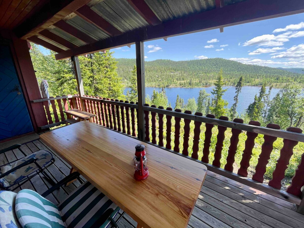 Pequeña casa de vacaciones con vistas a los fiordos y las montañas.