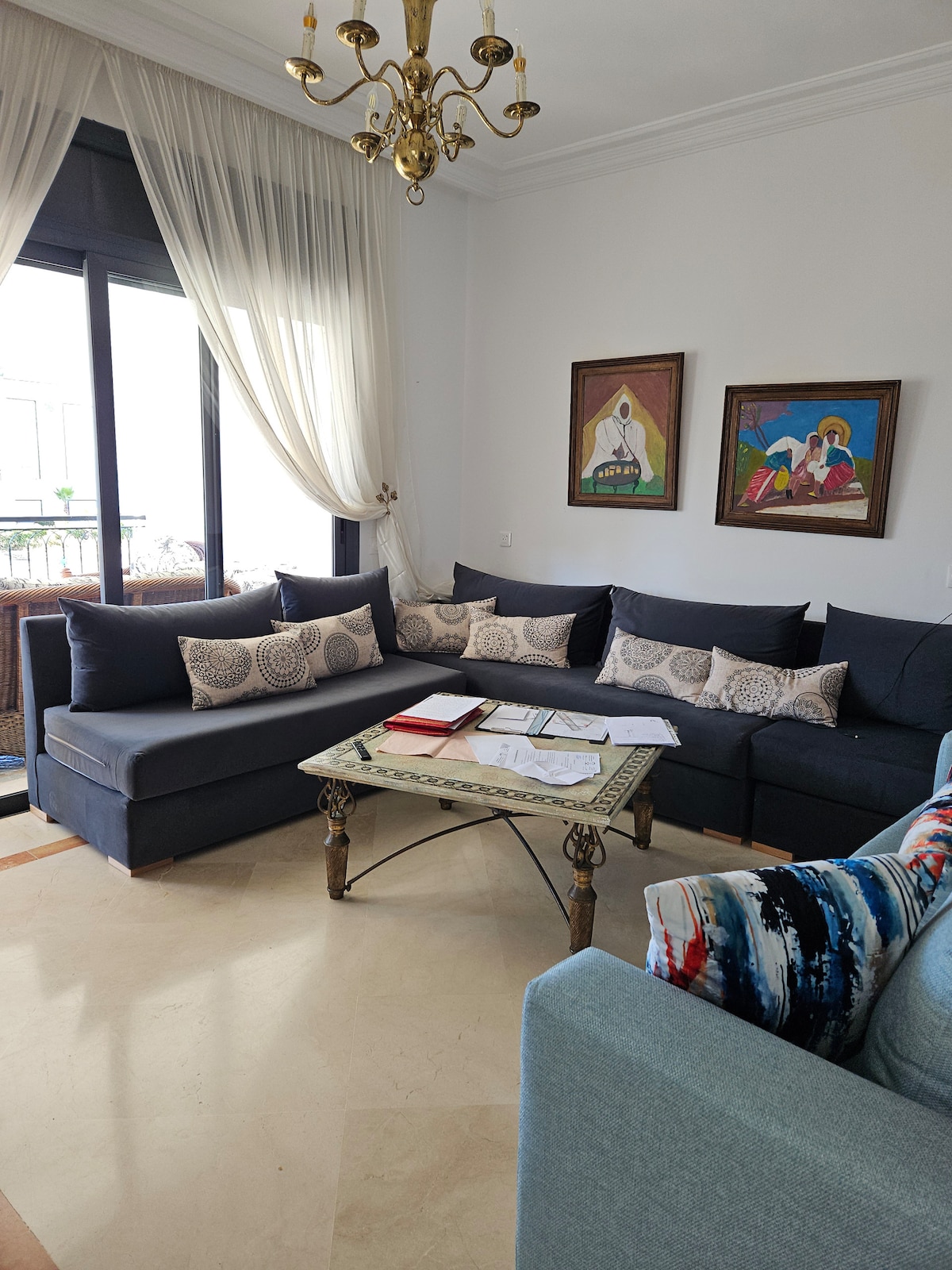 Apartamento de ensueño con vistas al mar y piscina en Cabo Negro, Marruecos. Suite principal, dormitorio infantil, cocina equipada, sala de estar luminosa con TV conectada, comedor para 8 personas. Residencia con 2 grandes piscinas Tobogán, campos de minifútbol, pista de petanca, parque infantil. Acceso rápido a la playa, restaurantes, tiendas, parque acuático, quads, caballos y campo de golf. Aparcamiento y servicio de entrega (Glovo) disponibles. Ideal para unas vacaciones en familia. Atención piscina no operativa en invierno del 1/10 al 15/5