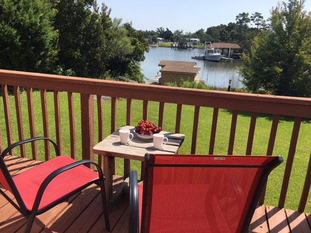 Desconecta de la rutina en este alojamiento único y relajante. Disfruta de un entorno tranquilo y silencioso frente al mar. Pesca o navega en kayak desde tu propio muelle privado, o simplemente disfruta de las vistas. Casa móvil individual bien cuidada con terraza junto al agua y gran porche cerrado. ¡Trae tu moto acuática y amarra en nuestro muelle! A 10 minutos de la base y a 13 minutos de las fabulosas playas del océano Atlántico.