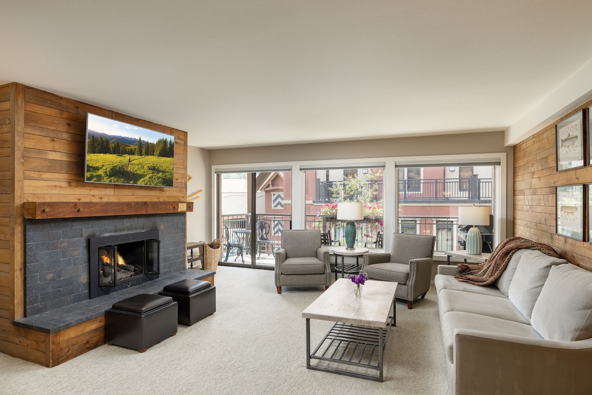 ¡Condominio totalmente remodelado para alojar a 2 familias! Fácil acceso a pie al ascensor de Assay Hill a través del puente de madera y hacia la montaña. Diseñado para una comodidad total, desde los pisos con calefacción en la cocina, la entrada y los baños hasta los electrodomésticos gourmet, la mesa de comedor artesanal para 6, ¡con 4 más en la barra! ¡Relájate en el sofá modular súper suave frente a la chimenea de gas y la sala de estar al aire libre en la cubierta para los 300 días de sol!