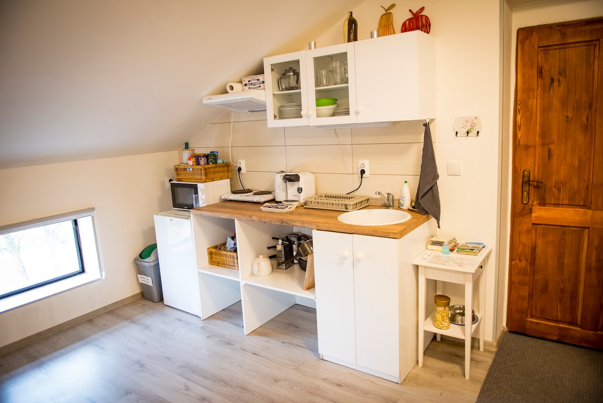 Ubytování s nejkrásnějším výhledem na Jičín a okolí, se nachází v zemědělské usedlosti se stájí, jejíž základy pochází ze 17. století. Renovované prostorné podkrovní apartmá nabízí hostům veškeré pohodlí a komfort, skylink TV, kvalitní wi-fi, monitorované parkování, grill. Hosté zažijí jedinečnou atmosféru života na statku s chovem koní. Výjimečná lokalita umožňuje našim hostům být obklopeni přírodou luk a pastvin, a zároveň se nacházet v docházkové vzdálenosti historického centra města Jičín