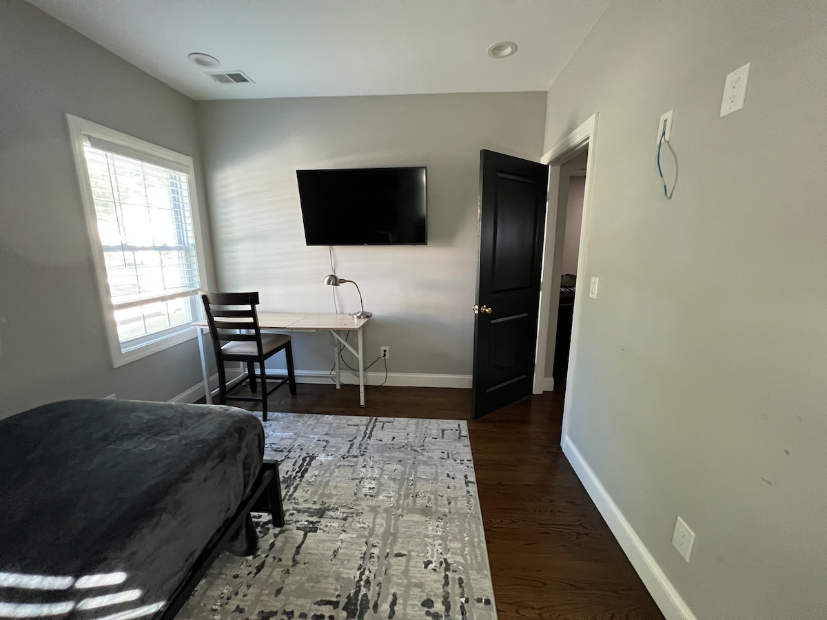 Acogedora casa con 2 dormitorios con camas tamaño queen y una tercera habitación con espacio de oficina. A 2 millas del centro de New Brunswick, donde puedes coger el tren a Nueva York y Filadelfia, o disfrutar de la bulliciosa vida nocturna del centro. A menos de 2 millas del campus de Rutgers College Ave y del estadio Rutgers. A 2 millas de RWJ y St. Peter's. Perfecto para profesionales que viajan. Cortinas opacas, televisores inteligentes, electrodomésticos nuevos, lavandería, wifi, entrada sin llave, aparcamiento fuera de la calle, centros comerciales cercanos y mucho más.