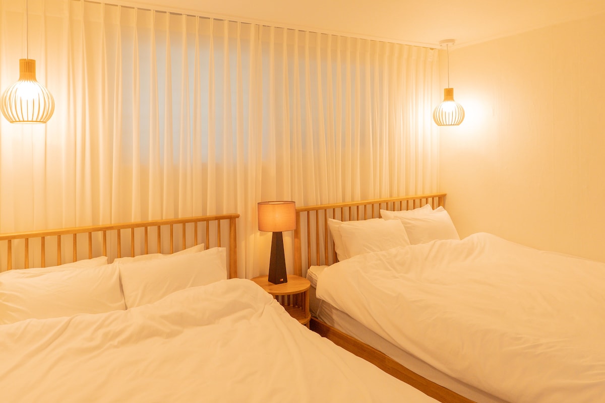 [Afterglow Seoul] ofrece el espacio de alojamiento más espacioso cerca de Jamsil en una ubicación conveniente. Se proporciona una sala de estar abierta y dos acogedoras habitaciones, y está a 5 minutos de la estación Songpa, por lo que es fácil llegar a Jamsil. Instalaciones de ☆alojamiento. ▪Sala de estar + 1 dormitorio + 2 dormitorios ▪Dormitorio de 1 a 2 camas individuales. ▪Dormitorio 2 - 1 cama tamaño queen ▪2 camas plegables más disponibles ▪Televisor UHD de 65 pulgadas (Netflix, etc.) ▪Sofá grande ▪Aire acondicionado del sistema ▪WiFi 5G gratuito Ajuste ▪individual de la caldera Vestidor ▪LED ▪Secadora de pelo. ▪Cocina y utensilios de cocina ☆Área comercial perimetral ▪Lotte Tower/Lotte World/Seokchon Lake - 6 minutos en coche Cerca del Parque ▪Olímpico/Hospital Asan A 1 minuto▪ a pie, tienda de conveniencia abierta las 24 horas y varios restaurantes. Entorno tranquilo ubicado en una zona ▪residencial ☆Transporte ▪Metro - Línea 8 Songpa Station (5 min a pie), Estación de Seokchon en la línea 9 (a 9 minutos a pie) ▪Autobús: a 1 minuto a pie de la parada de autobús. ☆Estacionamiento Estacionamiento privado▪ enfrente