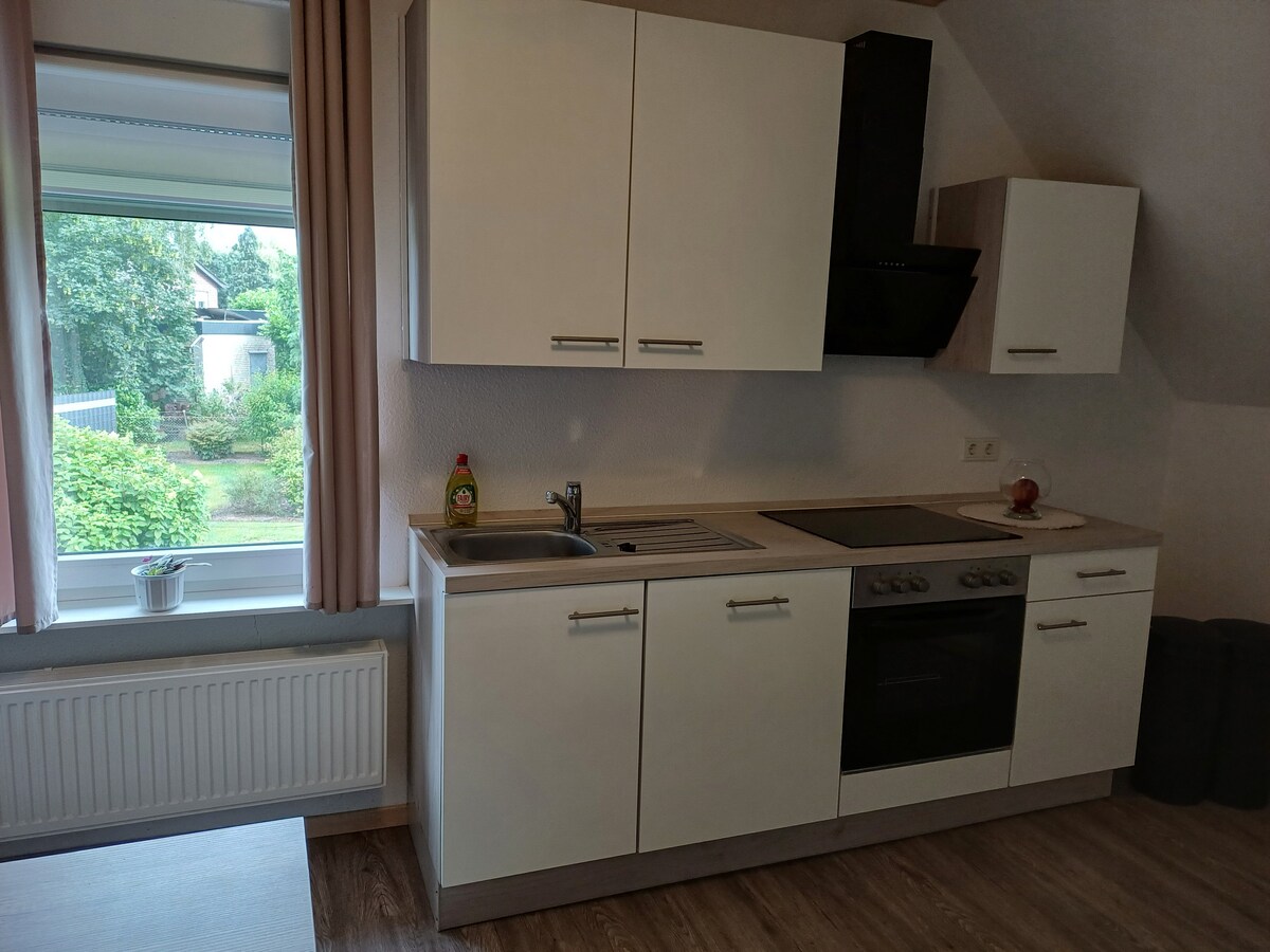 Nuestro apartamento amueblado con encanto y con entrada independiente le ofrece, con una superficie de 70 metros cuadrados (divididos en sala de estar, dormitorio, comedor y cuarto de baño) y un balcón bañado por el sol, suficiente espacio para unas vacaciones relajantes. La construcción de madera proporciona un clima saludable y agradable. Visite el santuario de Kevelaer o descubra la zona recreativa de Maasduinen. El aeropuerto de Weeze también está cerca y, si lo desea, le ofrecemos un servicio de transporte al aeropuerto.