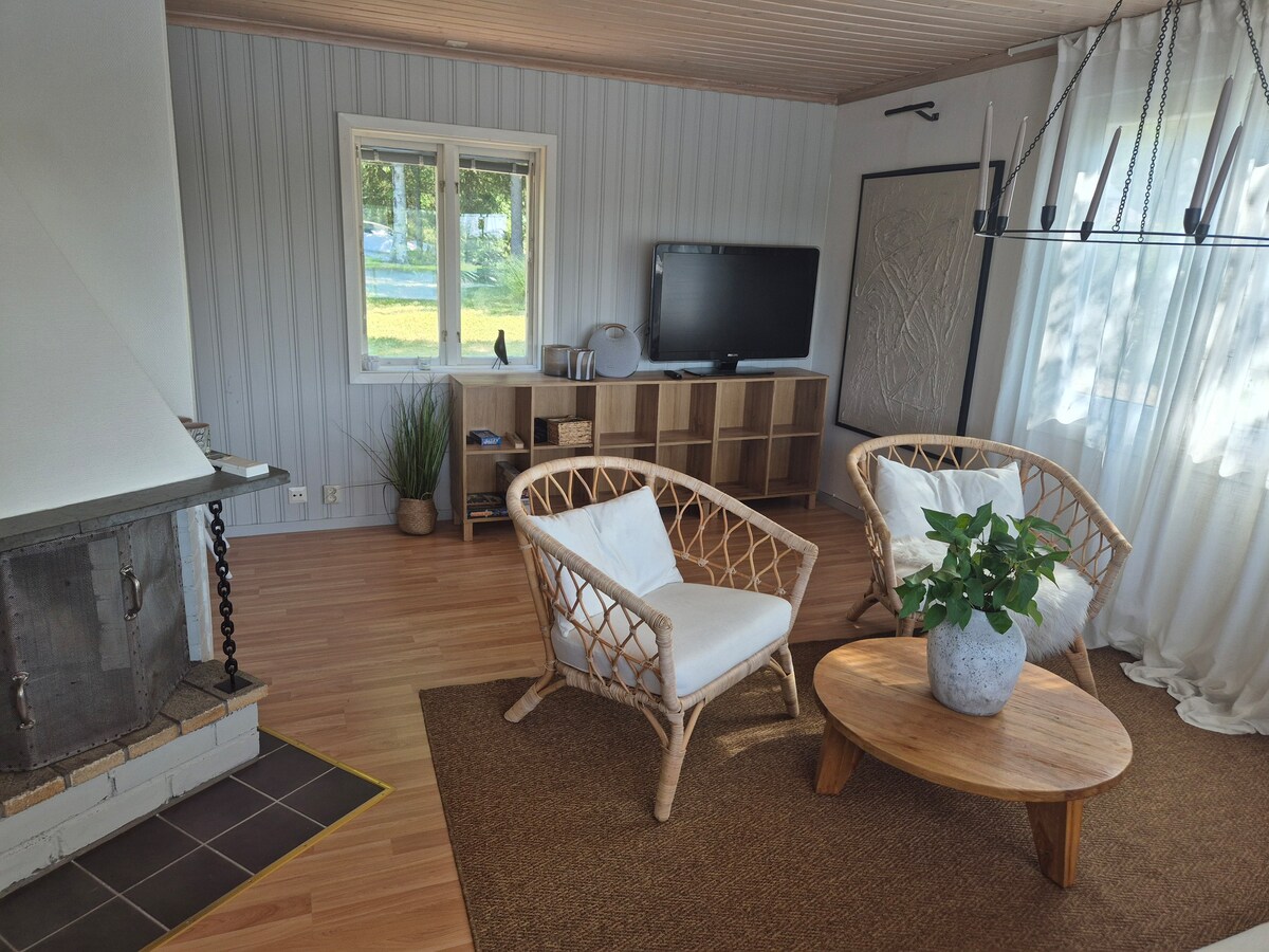 ¡Cabaña pequeña a solo 15 m del río! ¡Buena ubicación para tomar el sol! Cocina totalmente equipada. Ducha, aseo y lavadora/secadora. Televisión de 48" con Chromecast. Cama doble de 160 cm. Sofá cama de 140 cm. Sauna de leña y bañera de hidromasaje disponibles, 750 SEK/4 h bañera de hidromasaje, 750 SEK/4 h sauna. Alquiler de ropa de cama/toallas 150 SEK por persona. La bañera de hidromasaje no está garantizada cuando la reserva se realiza con menos de 5 días de antelación (limpieza, químicos y cloro) Disfruta de las vistas, agradables paseos, cerca del centro de la ciudad, reserva natural, Ica maxi y Avion.