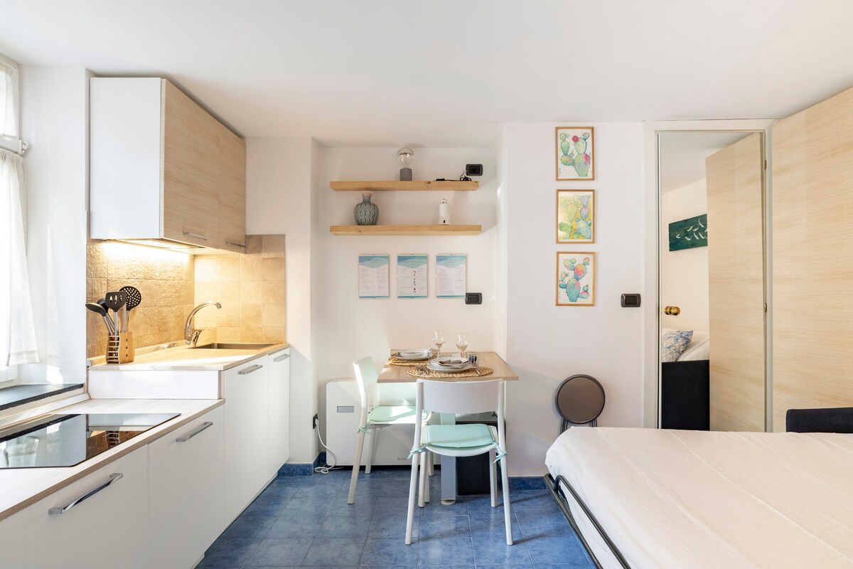 PEQUEÑO estudio de solo 22 metros cuadrados para dos personas, prácticamente como una habitación con sofá cama y pared de cocina equipada, equipado con muchas comodidades a pesar de su tamaño. Situado en una residencia tranquila y exclusiva con aparcamiento privado. Situado a 1,5 km de Sori (2 minutos en coche, 15 minutos a pie) y cómodo para visitar los destinos turísticos de la zona. NOTA: EL ESTUDIO NO TIENE VISTAS AL MAR.