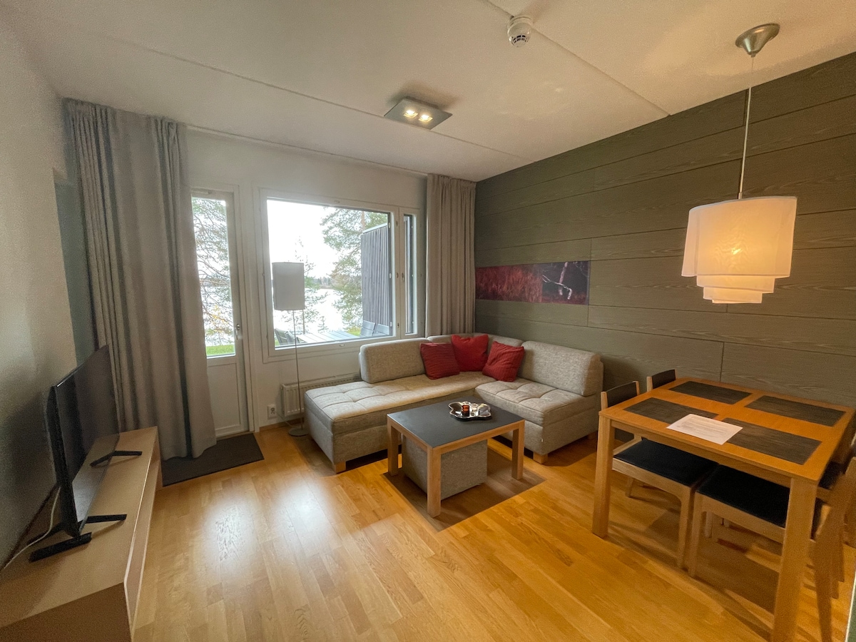 Cabaña de madera A (33 m²) en el centro de Vuokatti, paisaje del lago