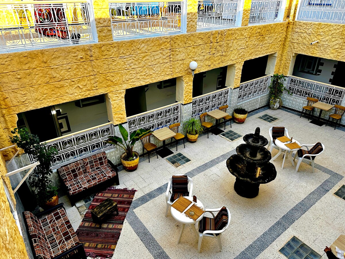 Situé au coeur du centre ville de Sousse, l'hôtel propose des chambres climatisées ainsi qu'une connexion Wi-Fi gratuite. Elles disposent également d'une télévision par satellite, d'un téléphone et d'une salle de bain privative. Vous séjournerez dans un quartier animé et historique où vous trouverez à quelques pas une variété de restaurants, de bars et de cafés. La plage Boujaafar se tient à 200m de l'hôtel, la Médina est accessible en 5min à pied. L'établissement est à 200m de la gare de train