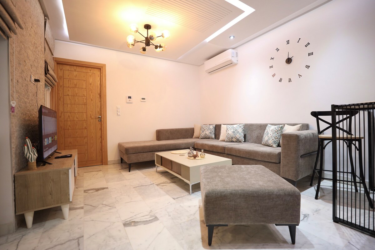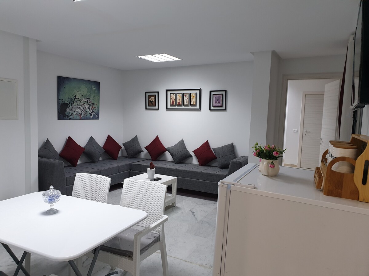 🌴 Escape to our charming 1-bedroom apartment in the heart of Sousse’s touristic zone! This bright, stylish retreat features a comfy queen bed, fully equipped kitchen, stylish living space, balcony, and fast Wi-Fi. Just 2 min to the beach, in the heart of touristic zone, close to the Medina, cafes, and shops. Perfect for couples, solo travelers, or small families looking to explore Tunisia’s coastal charm. Book your stay and experience Sousse like a local!☀️🏖️🔑