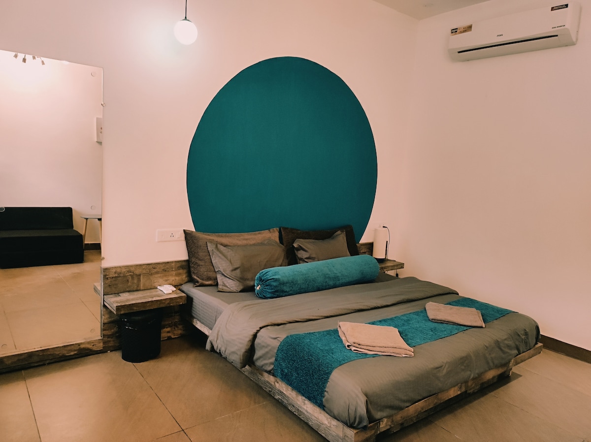This beautiful minimalist room is part of my hostel. The room offers refreshing garden view and has a private bathroom. Situated in a quiet neighbourhood just minutes away from Varanasi's main train station, it is the perfect spot to relax in Varanasi. Premium vegan bath amenities and towels are provided. Power back-up on AC is available during the summers. Please note that the property is vegan-friendly and its occupants vegetarian. Meat of any kind is prohibited.