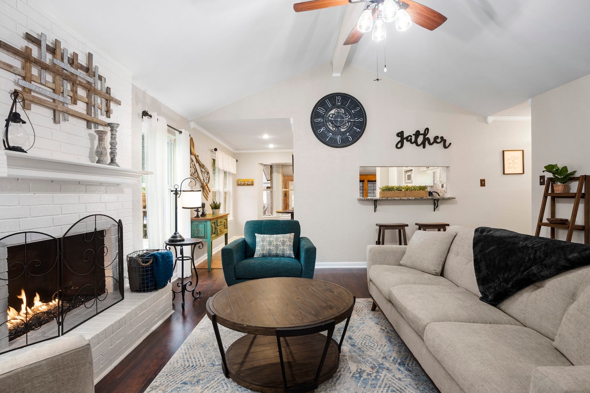 Disfruta de mañanas brillantes en esta hermosa y espaciosa casa familiar. A 9 minutos de DT, SOCO, Zilker Park, Auditorium Shores y Lake Austin. ¡Decoración digna de Instagram! Asa algunos filetes o siéntate alrededor de la hoguera y juega al corn hole mientras los niños juegan en la casa del árbol. Disfruta de una película en la acogedora y cómoda sala de estar o disfruta de una noche elegante frente a la chimenea de cristal. Si necesitas algo de tiempo a solas, dirígete a la oficina/biblioteca del bungalow. Tenemos camas para 7 personas, pero si tu familia es más grande, ponte en contacto con nosotros.