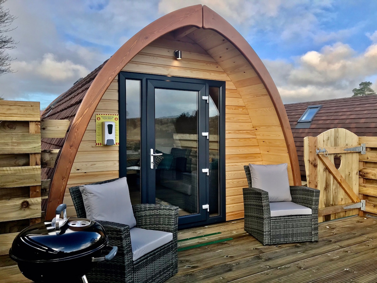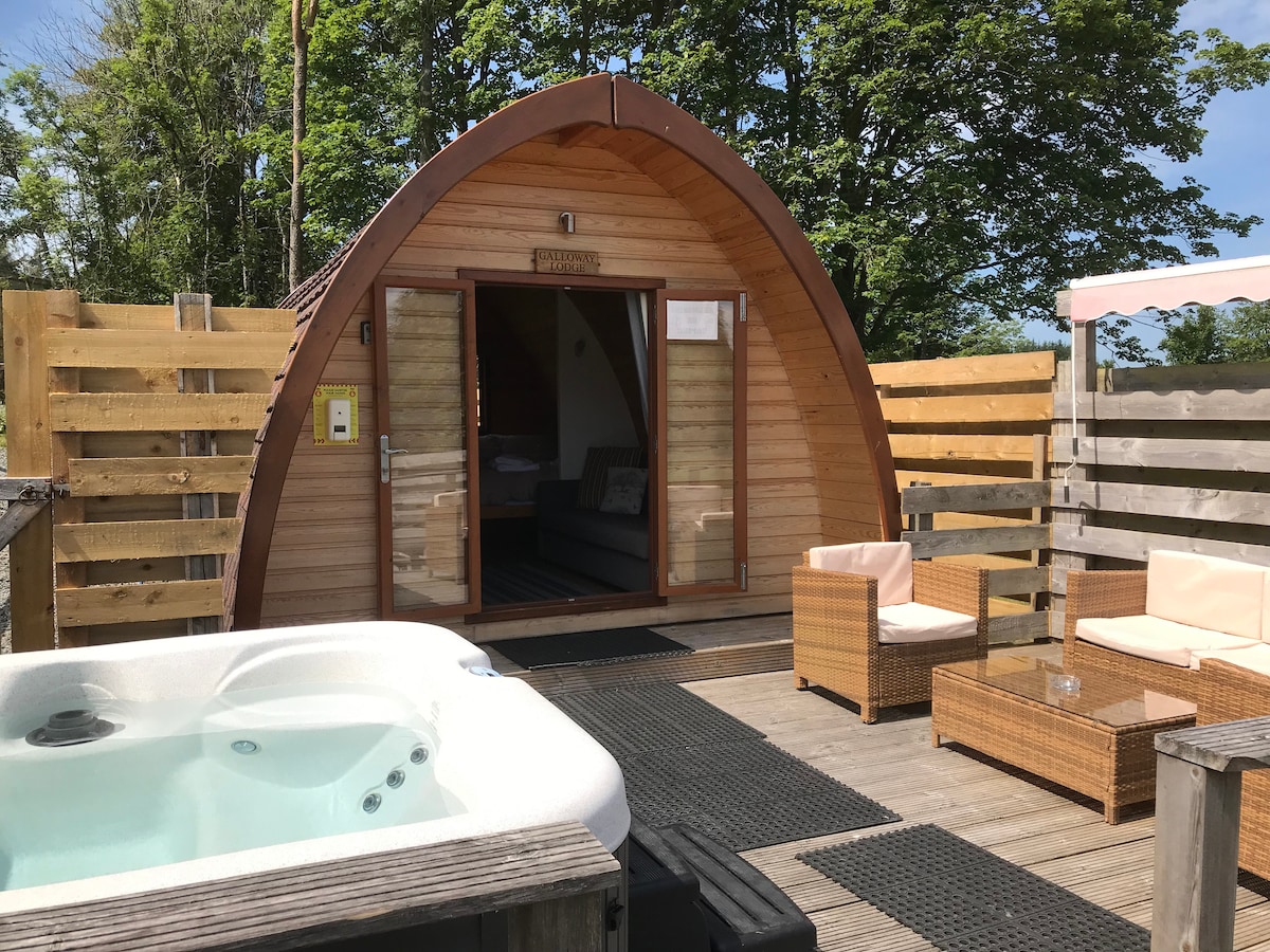 El Galloway Luxury Lodge Pod con jacuzzi eléctrico para 2 personas se encuentra entre las colinas de Carrick en South Ayrshire, suroeste de Escocia. Características: Ducha, lavabo e inodoro en suite Cama doble fija Ropa de cama y toallas (2 por persona) Sofá cama grande Cocina pequeña con nevera, microondas, hervidor de agua, tostadora y fregadero. Cubertería y vajilla. Mesa de comedor y sillas. TV de pantalla plana/DVD Enchufes eléctricos con puntos de carga USB. Aislamiento bajo cero y calefacción por suelo radiante para que estén cálidos y acogedores.
