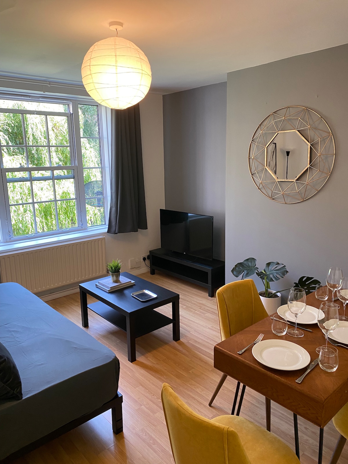 Disfruta de una experiencia elegante en este lugar céntrico. Un apartamento espacioso en el centro de Londres. El departamento está en una pequeña calle dinámica con pubs y restaurantes. A 2 minutos a pie de la estación de metro y la línea de tren está en la parte trasera del edificio. El aire acondicionado es proporcionado por unidades de aire acondicionado portátiles que ventilan las ventanas. Estas unidades de aire acondicionado reducen sustancialmente la temperatura en los días calurosos y lo hacen más cómodo, pero no hacen que el apartamento sea frío.