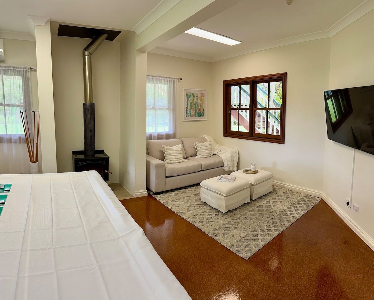 Set in a lush sub-tropical garden, this one of a kind experience in one of the largest original homesteads in Kenmore will be a memorable stay! The apartment has its own entry, lounge, kitchenette, large bedroom and bathroom entirely at your disposal. The scent of freshly baked breakfast treats may wake you every morning. These will be delivered to your door. Your hosts are an international couple that have travelled extensively and are delighted to receive you.