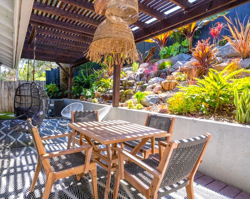 Soak up the Southern California sun at this serene 3BR, 2BA oasis in Encinitas. Just ½ mile to the beach and Hwy 101, this private Leucadia retreat features a resort-style waterfall, pergola with swinging chairs, and a sun-soaked patio for relaxing or dining outdoors. Inside, enjoy plush beachy-boho interiors perfect for unwinding after days spent exploring Encinitas, La Jolla, Carlsbad, LEGOLAND, and more. Designed for effortless indoor-outdoor living and unforgettable coastal nights.