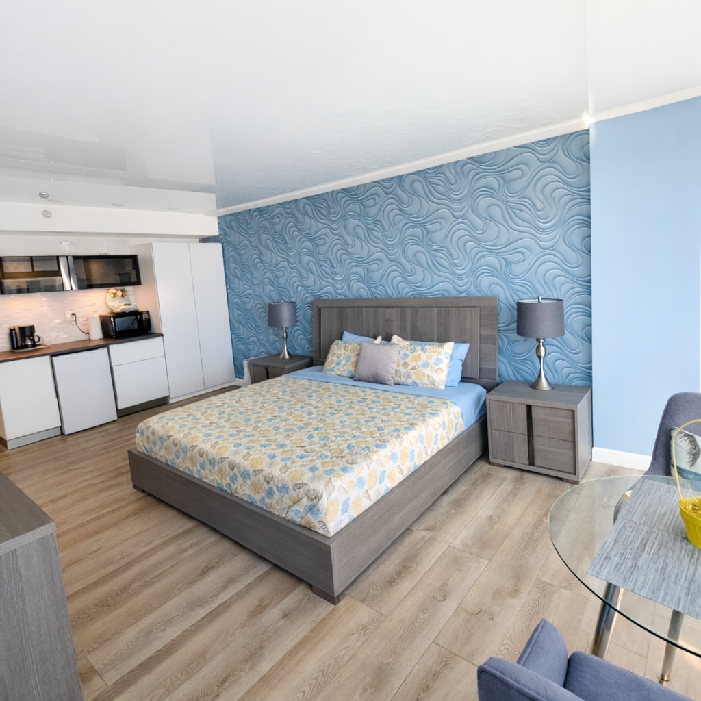 Estudio 🌊 ✨ frente al mar, ¡totalmente renovado! Alójate en el Harbour Beach Resort, que cuenta con una cama tamaño king, almohadas de gel refrescantes y un sofá cama. Relájate con increíbles vistas al mar mientras disfrutas de un espresso fresco. Mira tus programas favoritos en el televisor inteligente de 50 pulgadas. 🏖️ Los huéspedes tienen acceso completo a las comodidades del centro vacacional: piscina, bañera de hidromasaje, área de fitness, estacionamiento, Wi-Fi y acceso a la playa. No esperes, ¡reserva tu escapada perfecta a Daytona Beach ahora! 🌴☀️