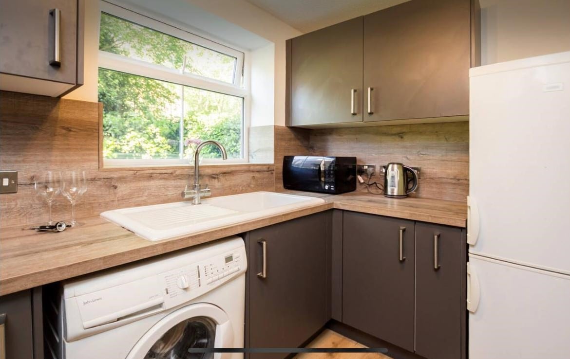 Disfruta de una experiencia elegante en este céntrico apartamento de 2 dormitorios y 1 baño RECIENTEMENTE RENOVADO en E14. A 5 minutos a pie de la estación Blackwall DLR + a 20 minutos de la calle Liverpool St. El piso está elegantemente renovado a un alto nivel con pisos de espiga + paredes con paneles frescos para dar una sensación clásica. Ambas habitaciones tienen camas tamaño king y un montón de armario/espacio de almacenamiento. Los armarios de la cocina son de un hermoso azul medianoche para dar una sensación de lujo. El salón/cocina de planta abierta da una sensación cálida y abierta con un televisor inteligente.