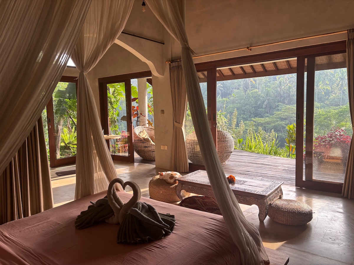 El "Dragon 's Nest" de Katana Villa es el lugar perfecto para que una familia o una pareja de luna de miel sueñen con espectaculares VISTAS AL OCÉANO y a la montaña. ¡Este nido de dragón tiene una piscina de primera categoría para niños! Con mucho, una de las villas vacacionales más únicas de Bali con una piscina de doble nivel, tobogán de agua, cueva de la piscina y un NIDO de DRAGONES como la piscina superior. Esta cabaña tiene una cama tamaño king y cómodos colchones para tres personas adicionales.