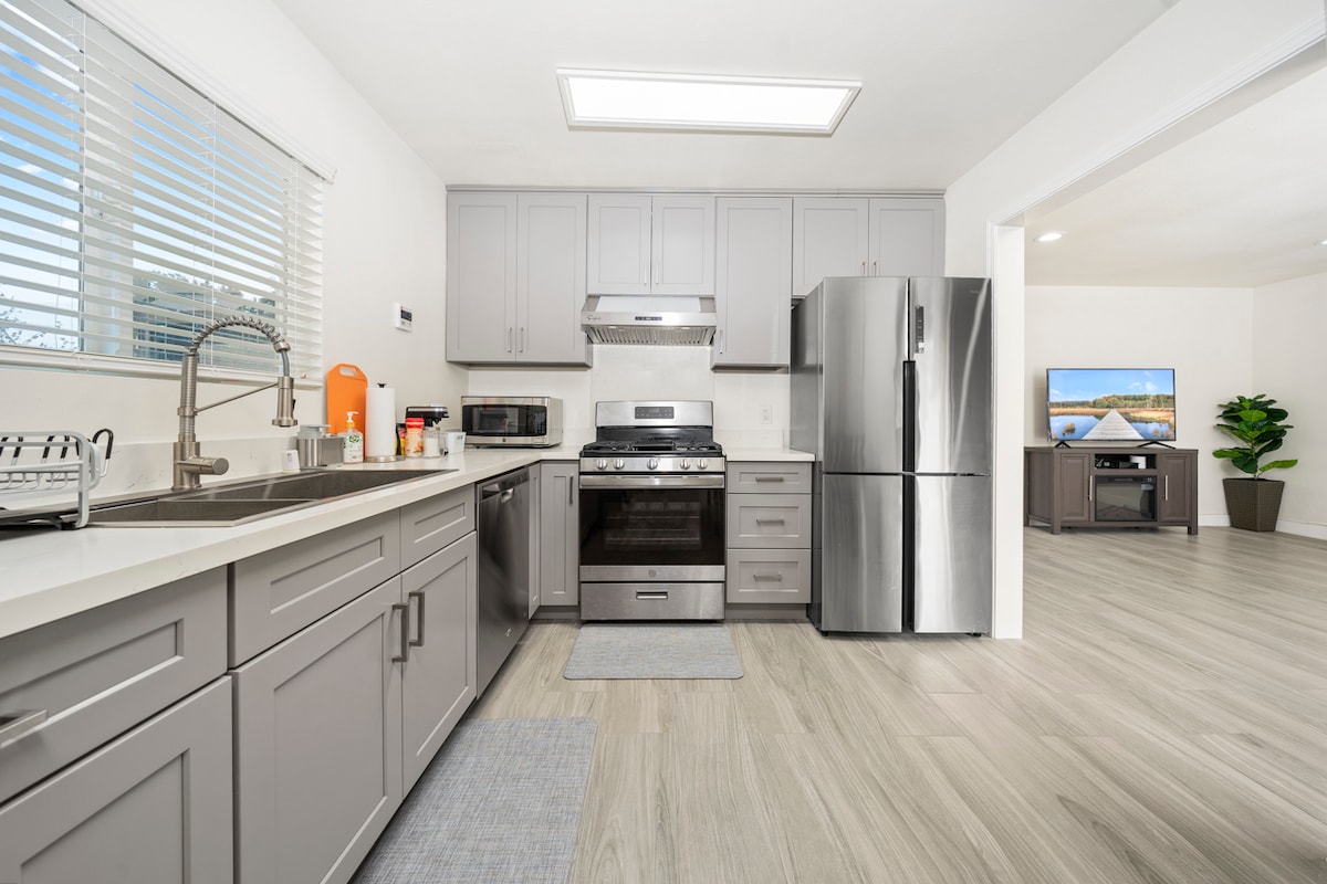 ¡Apto para niños! Lleva a toda la familia a esta nueva casa remodelada que tiene un montón de espacio para divertirse. Nuestra casa está escondida en una calle más pequeña con poco tráfico, pero tu familia estará cerca de todo cuando te hospedes en este lugar céntrico. A 1 minuto de la autopista, a 4 minutos a pie de un restaurante, una peluquería y un 7-Eleven. Ubicación conveniente para viajar a 60, 605 y 10FWY. El parque infantil en el patio trasero puede mantener entretenido al pequeño. **Nuestra entrada puede acomodar 4 vehículos de tamaño estándar**