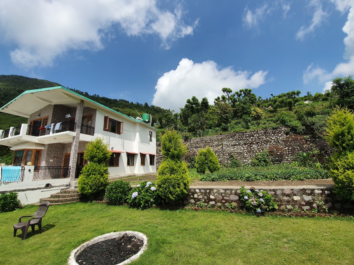 "The cottage is situated in beautiful valley surrounded by farms and orchards. Oak trees forest approachable walk on river basin. A dream getaway from the hustle bustle of city life, it is tastefully furnished and is a fine combination of traditional architecture & modern designs. Guest can absorb the beauty of valley while having scrumptious food at the in-house Kitchen. Property has plenty of outdoor space for sports activities Basketball, Volleyball,Badminton & kids playing area.