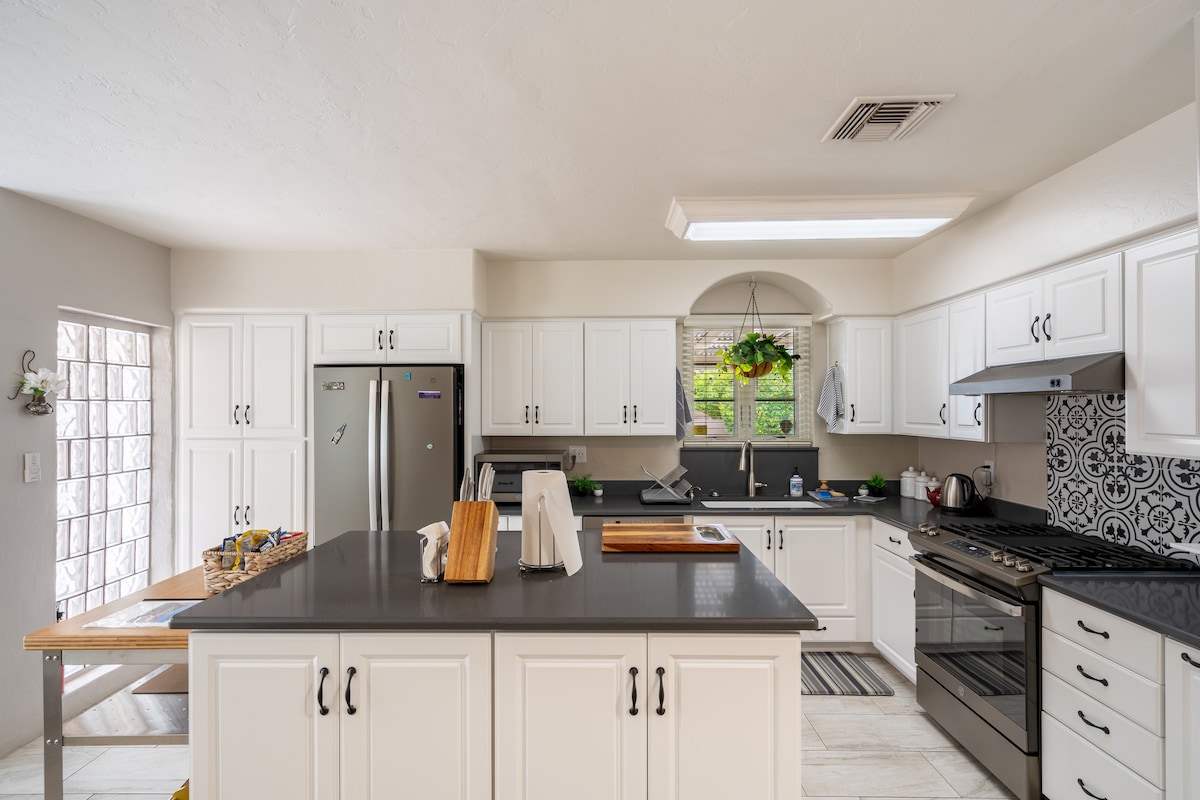 This studio is spacious & comfortable. It is detached, secluded, on a quiet street, ample street parking and completely fenced in. The yard has a ramada with a table, chairs, string lights and a chiminea Inside, you’ll love the exposed adobe, skylight, and wood beam ceilings. The fully stocked kitchen is updated, with full size appliances. In the heart of Armory Park, it is close to 5-points, downtown, historic 4th Ave and Uof A. Ask me for dining, hiking, shopping and day trip recs!