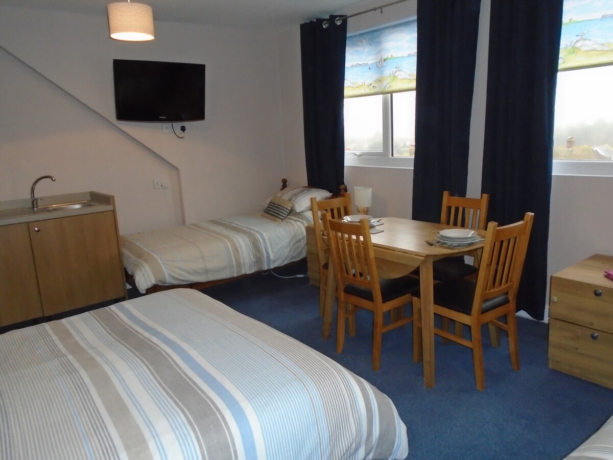 Olvídate del autoservicio y toma este gran baño privado con 2 dormitorios dobles en Clarence House y deja que los restaurantes locales te traten, encontrarás el enfoque tranquilo y silencioso en Clarence House garantiza la relajación al máximo. Tardes muy tranquilas, a pocos minutos a pie de la playa con cafeterías para desayunar y vistas a la playa. El Beatrice deluxe tiene ropa de cama de calidad, vista al mar, máquina Nespresso, microondas y mininevera con leche fresca para darte la bienvenida.