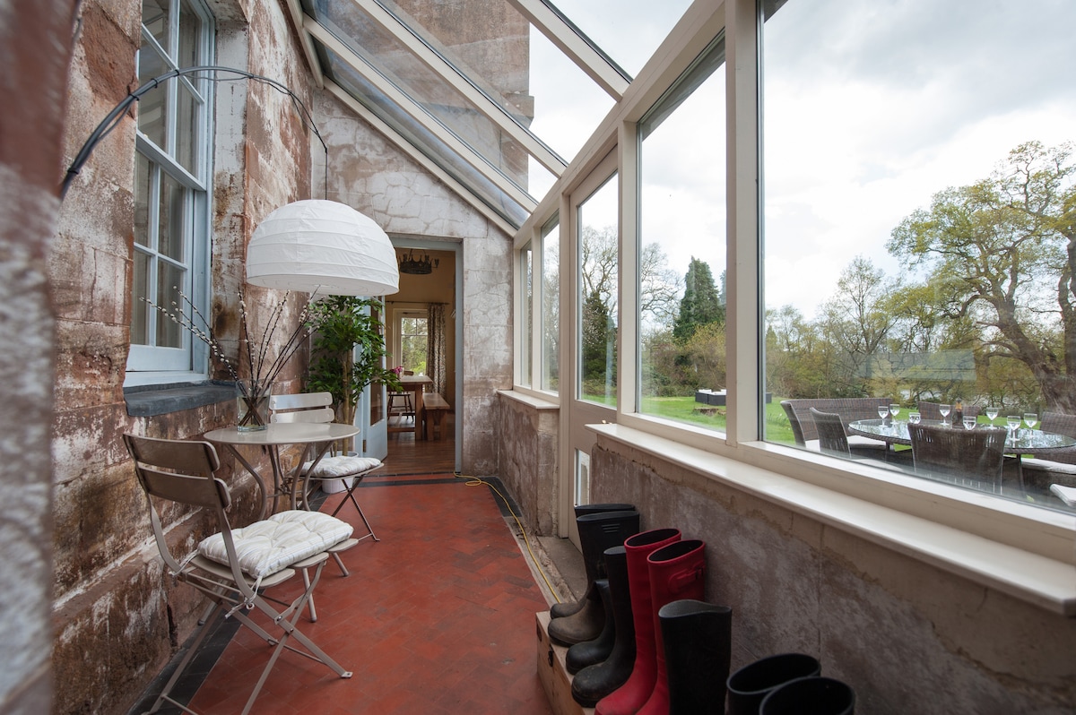 The Welsh Gatehouse is a beautiful historic house with modern amenities. Imagine staying in a fairy tale castle built in 1270. The thick walls, ancient windows & steep spiral staircase say 'history'. Romantic log fires keep you warm you in winter, & the thick walls keep you cool in summer. Views from the top of the tower are extraordinary over the Severn Bridges and the Breacon Beacons (NB we call this the terrace in our description below). Unique, luxurious, quirky yet comfortable.