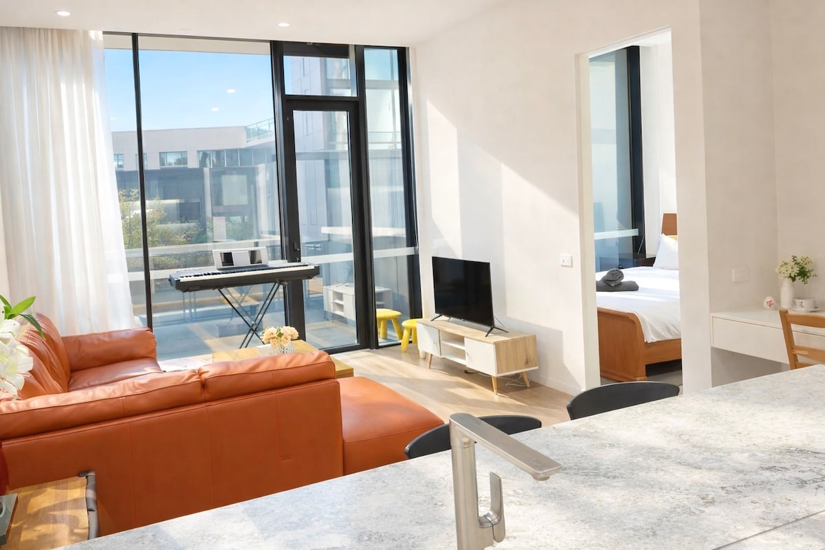 Un espacio tranquilo para llamar hogar mientras estás en Melbourne, tu propio apartamento de 2 dormitorios y 2 baños (64 metros cuadrados internos + balcón de 6 metros cuadrados). Diseñado pensando en un santuario simple, moderno y minimalista. Disfruta de las increíbles vistas del perfil urbano. Este es un espacio de ambiente familiar. Ubicado junto a la estación de Southern Cross y la terminal de autobuses Sky Bus. Situado en la zona de tranvía gratuito, todo lo que Melbourne tiene para ofrecer está a tu alcance, cerca de comida barata, restaurantes elegantes y cafeterías de moda.