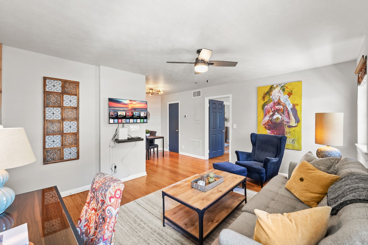 El lugar perfecto para llamar hogar, las estadías largas son bienvenidas y todas las estadías incluyen acceso ilimitado a la YMCA durante tu estadía. Si tienes alguna pregunta, no dudes en enviarnos una consulta antes de solicitar una reservación. El Retiro está separado de la casa principal (The Funk House). Se encuentra en la parte trasera, en el departamento del garaje del piso superior. Ha sido completamente renovado y amueblado en un lugar cómodo para "Retiro". Consulta antes de enviar una solicitud de reservación. ¡Esperamos recibirte en nuestro alojamiento!