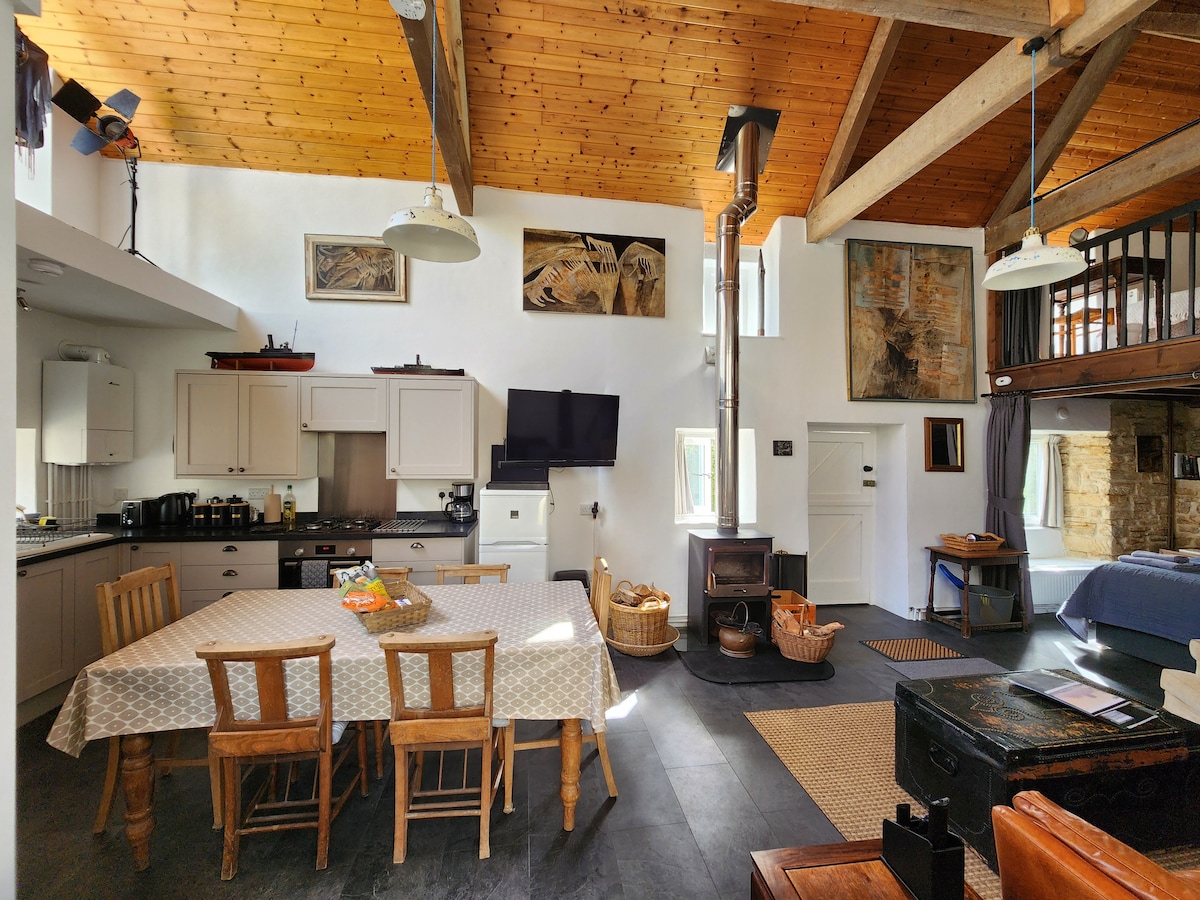 Un acogedor alojamiento solo para adultos, lujoso y privado, en nuestra pequeña y encantadora finca. Un entorno precioso con una vista maravillosa. Perfecto para una escapada romántica con extras únicos como una cocina al aire libre totalmente equipada, jacuzzi privado para 6 personas y terraza, estufa de leña de gas, además de cocina interior completa e instalaciones de baño. El granero tiene calefacción central de gas y también tiene puertas dobles plegables para que puedas traer el exterior y disfrutar del campo con un verdadero confort de lujo. ¡También hay muchos toques especiales!