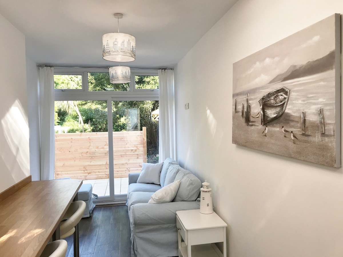 BOURNEMOUTH - CHRISTCHURCH - SOUTHBOURNE Apartamento de un dormitorio amueblado con un alto nivel. Todas las habitaciones en la planta baja. (Sin escalones) Entrada privada con espacio de estacionamiento, jardín trasero cerrado. Ubicado en el suburbio de Southbourne, pubs locales a la vuelta de la esquina, encantadores paseos junto al río en Iford con un gran campo para pasear perros. Christchurch y Quay justo al final de la carretera. Disfruta de hermosos paseos a Southbourne Beach, Bournemouth, Avon Beach, Hengistbury Head Nature Reserve, New Forest, Swanage, Durdle Door.