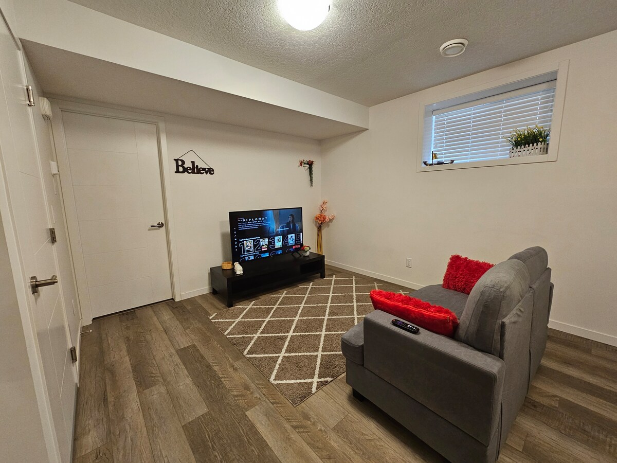 ¡Una suite en el sótano luminosa y acogedora en una zona tranquila cerca del Hospital South Calgary y Spruce Meadows! Perfecta para una persona, una pareja o una familia pequeña. La suite recién renovada tiene una sala de estar y cocina de concepto abierto. Una cómoda cama tamaño queen, con capacidad para dos personas y un sofá cama con capacidad para dos personas más. Hay un agradable parque infantil detrás de la casa y a pocos pasos se encuentra el hermoso Fish Creek Park. A minutos de Deerfoot y Stoney Trail. Parqueo para un carro