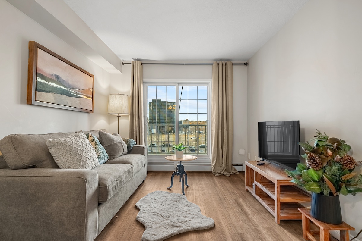 - Amplio apartamento de 1 dormitorio con techos altos. - Cama tamaño king con muchas almohadas. - TV de 55 pulgadas con Apple Play. - Wifi rápido. - Cocina totalmente equipada. - Aparcamiento subterráneo. - Vista preciosa del horizonte de la ciudad de Calgary. - Situado en Inglewood, encontrarás cervecerías locales, cafeterías, restaurantes de primera, música en vivo y tiendas. - ¡El río Bow, a pasos de tu puerta! - A poca distancia a pie de los terrenos de Stampede. - Podrás ver los fuegos artificiales desde el patio.