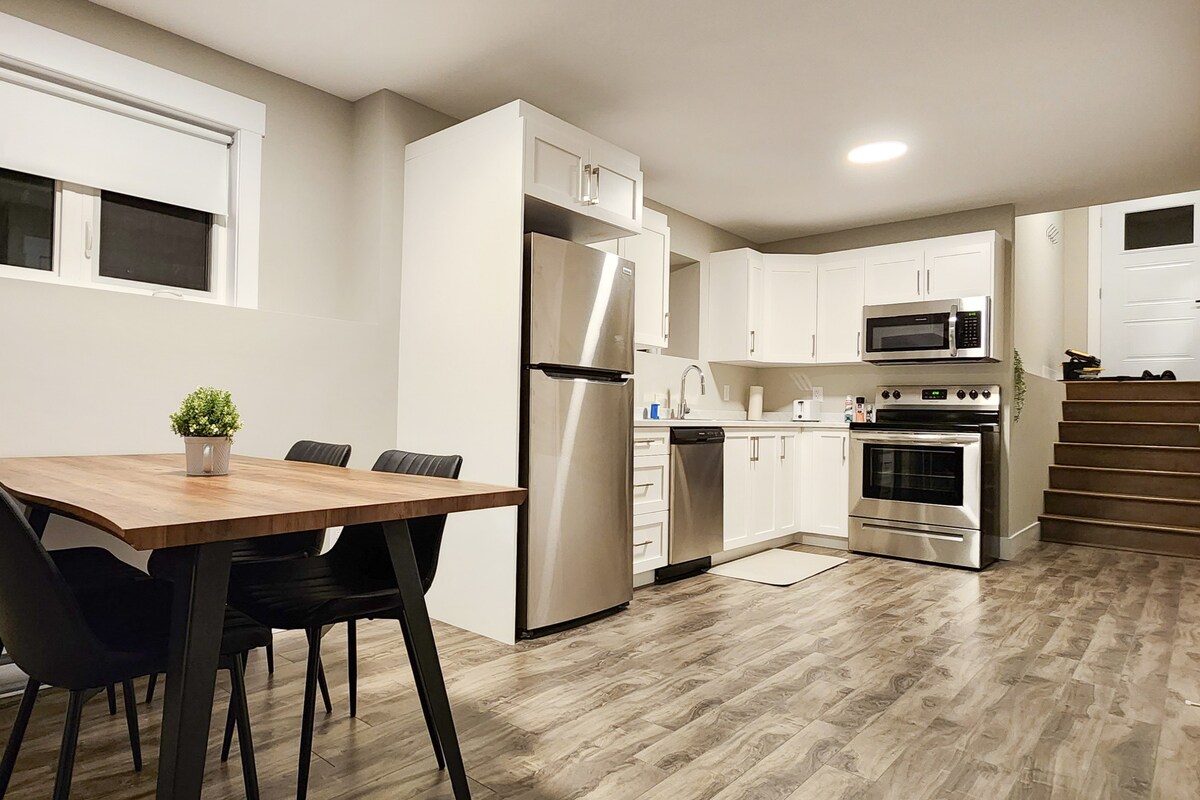 ¡Bienvenido a tu hogar lejos de casa en el corazón del centro de Moncton! Este elegante apartamento de dos niveles es un espacio privado y moderno adjunto a nuestra casa, perfecto para parejas, grupos pequeños o viajeros solitarios que buscan comodidad y conveniencia.