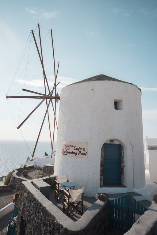 Construida alrededor del 1700, Anemoscope Windmill es una exclusiva villa boutique, en 3 plantas, de 180 metros cuadrados internos, recientemente renovada con elegancia. Abierto todo el año, con 3 dormitorios, 2 baños y una gran sala de estar con salón, cocina equipada y comedor, puede alojar cómodamente hasta 7 huéspedes. En las áreas al aire libre, los huéspedes pueden probar el jacuzzi, tomar el sol y admirar la espléndida vista panorámica de 360°, relajarse y disfrutar de la famosa puesta de sol sobre la caldera de Santorini.