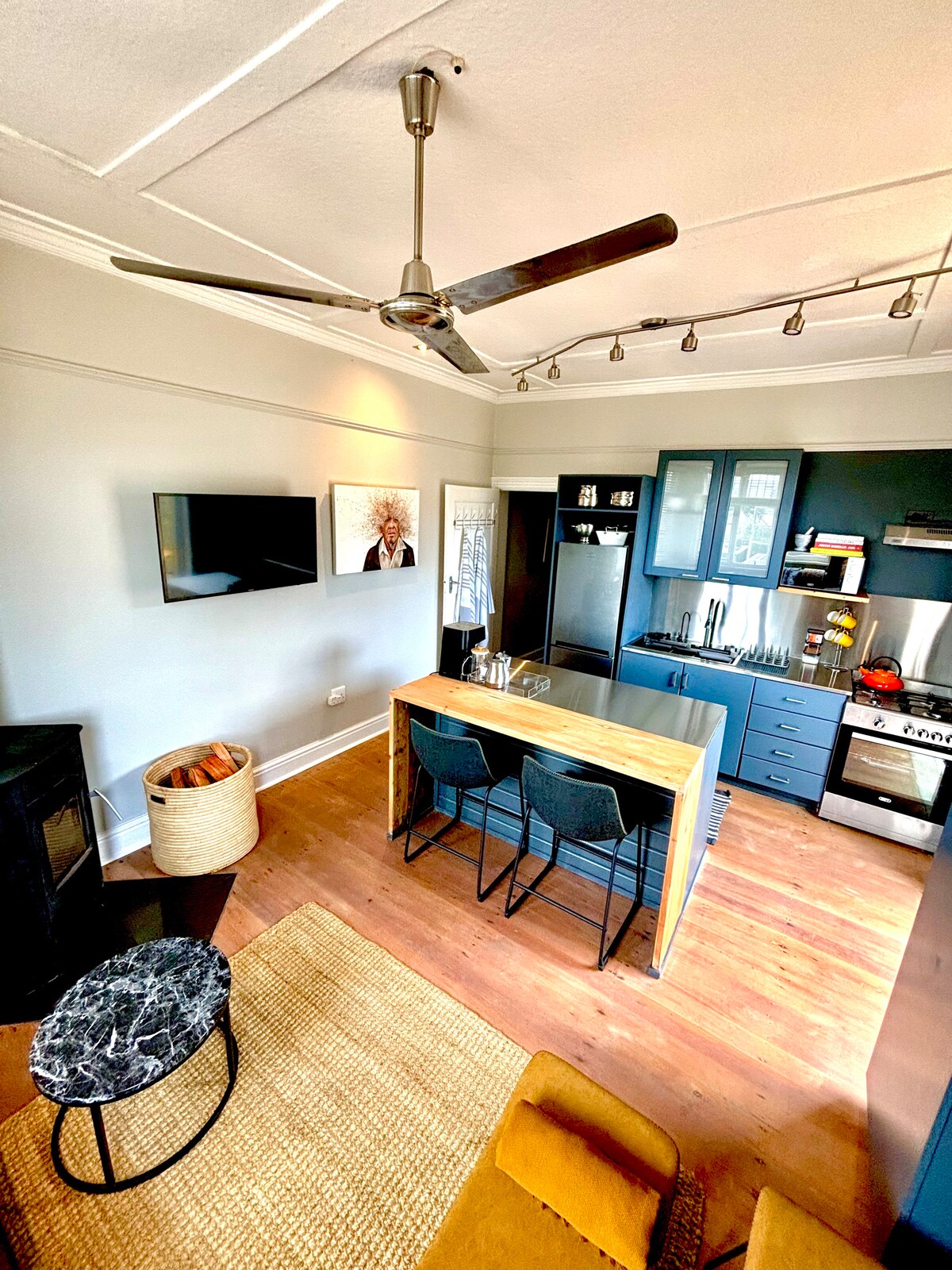 Este bungalow de tres dormitorios es una joya oculta detrás de una fuente con vistas al mar de 180 grados que ha sido completamente reformado y diseñado con buen gusto. Escucha las olas rompiendo en las rocas mientras te sumerges en el jacuzzi. La sala de estar de planta abierta fluye sin esfuerzo hacia una zona de terraza cubierta con vistas espectaculares. Situado a pocos pasos de la famosa piscina de mareas de St James con sus coloridas cabinas para cambiarse y a pocos minutos de la playa de surf de Muizenberg. ¡El lujo de caminar descalzo nunca fue mejor!