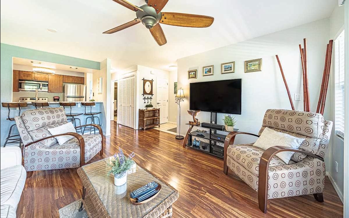 Ekahi says it all. Don't come all the way to Maui to stay in a bargain space. Unit 47A is a one bedroom (with sleeper sofa), two-bath renovated on the ground floor. This means a larger lanai than upper units. It also means that when you step off that lanai, you step onto A LOT of grass. Our condo is a 5-minute (barefoot) walk to the most wonderful of all Maui beaches; a ten-minute walk to the shops at Wailea. Restaurants nearby. Convenient yet without the road noise.2067153903 Privacy and peace.